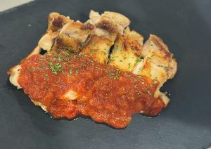 子供から大人まで人気のグリルチキンを、鉄板で皮をパリパリに焼き上げてご提供!