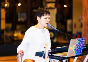 ピアノの弾き語り、めおとユニット「遇々(たまたま) 」の声明・歌唱を中⼼とした即興、音楽ユニット「ブランコノリ」での曲制作など、枠にとらわれない⾳楽表現を行う。正解のないテーマについてトークし、ライブする「犀の角講」主催。浄⼟真宗本願寺派明⾏寺の副住職兼坊守。音、画材等を素材として「今・ここ」に触れるワークショップや、音楽家を招いてのご法座「なんもない夜座」など、さまざまな企画を実施している。